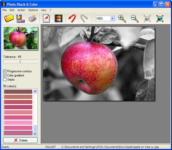 Photo Black & Color is a portable tool that allows you to make a partial de-saturation (as shown the screenshot below) on a picture by selecting the colors you want to preserve.